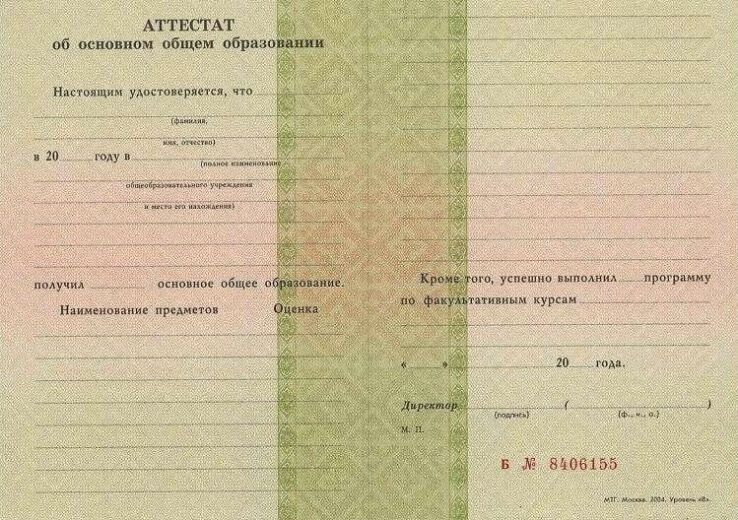- Документ уже был ранее, однако его потеряли, порвали либо повредили таким образом, что привело его в негодность. В результате – корочкой пользоваться уже нельзя, но иметь у себя в арсенале необходимо. Поэтому чтобы не тратить деньги и время на его восстановление, целесообразнее обратиться в нашу организацию. Мы за несколько дней изготовим корочки, идентичные предыдущему. Документ будет такого высокого качества, что даже профессионал не заметит разницы. С аттестатом за 9 классов любых лет, выполненным у нас, вы сможете продолжить обучение в любом учреждении образования.
